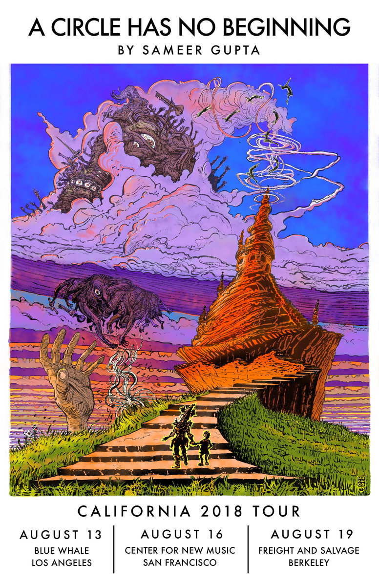 Hand Illustrated 11x17 Poster Print by Ian Cinco for 'A Circle Has No Beginning' August 2018 California Tour